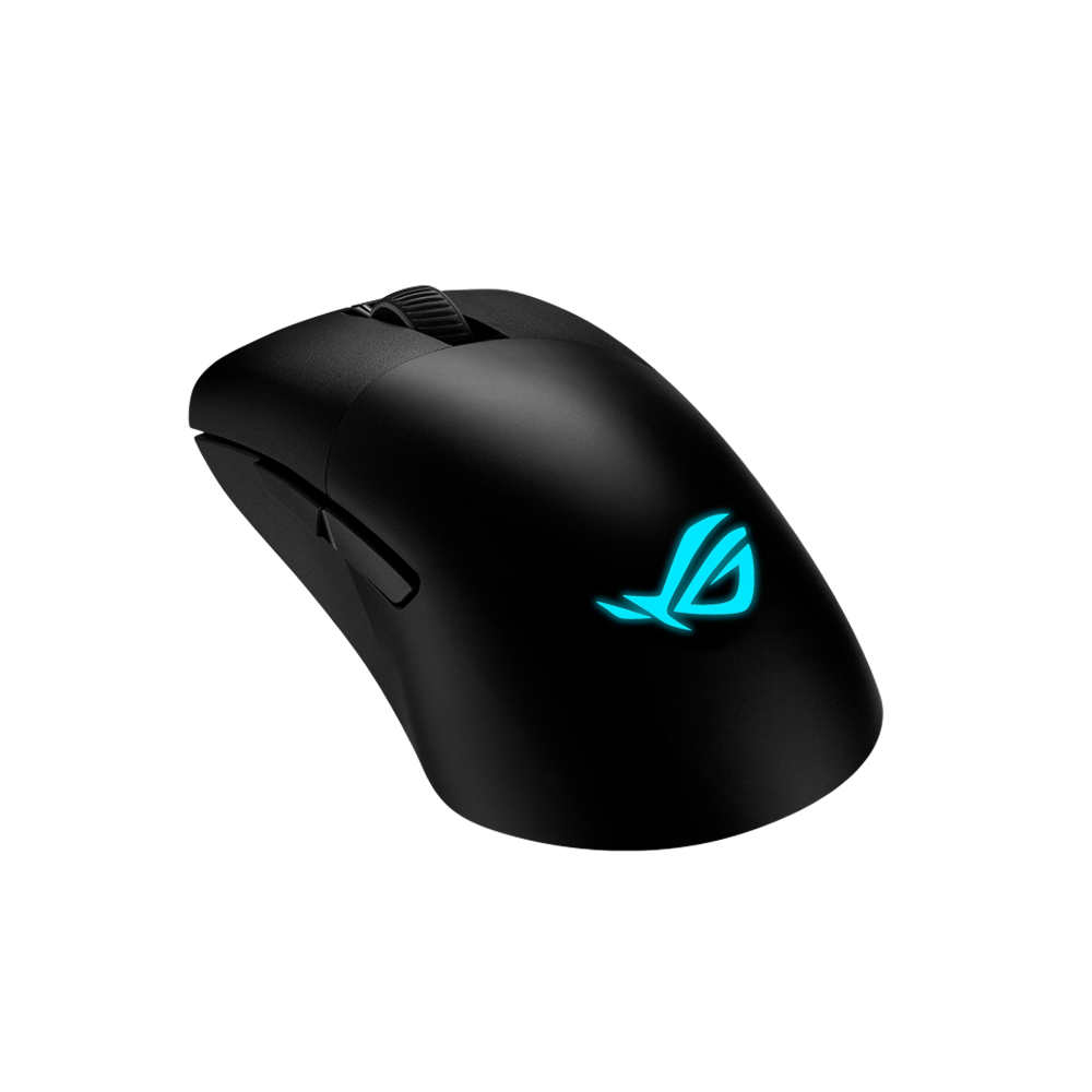 The ROG Keris Wireless AimPoint lightweight 75-gram wireless RGB gaming mouse features a 36,000 dpi ROG AimPoint optical sensor, tri-mode connectivity, ROG SpeedNova wireless technology, swappable mouse switches, ROG Micro Switches, PBT buttons, ROG Paracord, 100% PTFE mouse feet, five programmable buttons, ROG mouse grip tape.