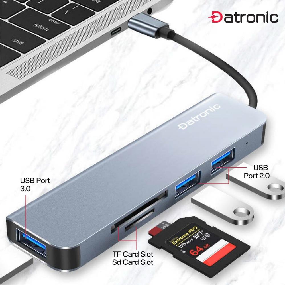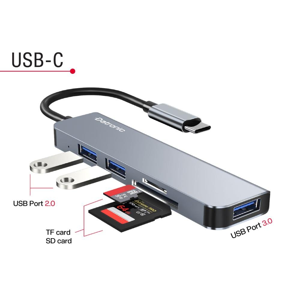 Type-C to USB3.0 to USB3.0/USB2.0 x 2 with SD&Micro SD Card Reader HUB with an aluminum shield that supports data transfer speeds of up to 5 Gbps is a device that allows you to connect up to four USB devices (such as flash drives, printers, or mice) to a single USB port on your computer or other device. These HUBs typically work by providing additional USB ports that you can use to connect your devices, allowing you to expand the connectivity of your device.And the SD&Micro SD allows you to transfer or read data using this adapter